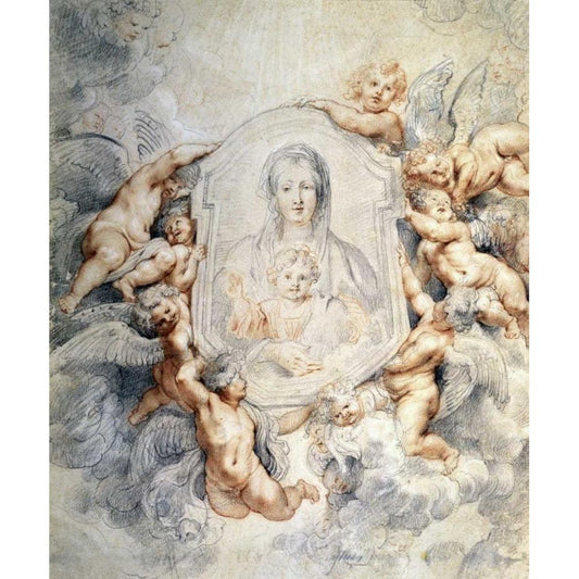 Image of the Virgin Portrayed with Angels Black Modern Wood Framed Art Print with Double Matting by Rubens, Peter Paul