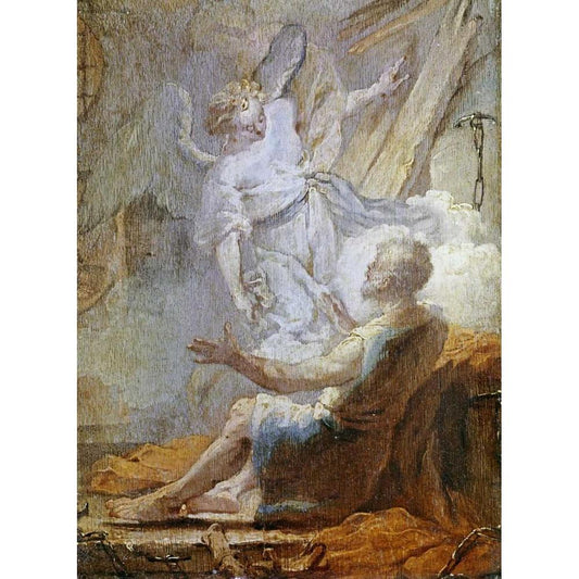 Liberation of Saint Peter Black Modern Wood Framed Art Print with Double Matting by Tiepolo, Giovanni Battista