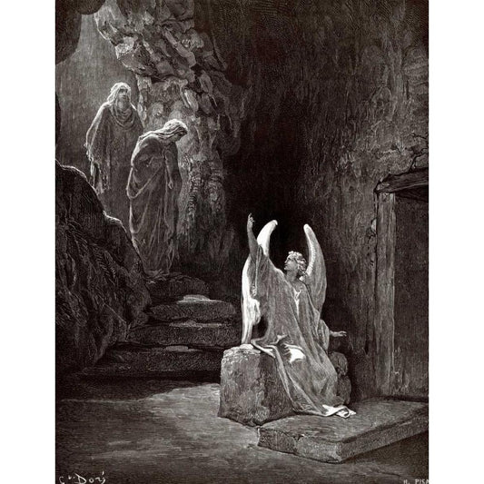 The Angel Seated Upon the Stone Black Modern Wood Framed Art Print with Double Matting by Dore, Gustave