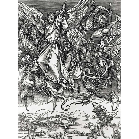 St. Michael Fighting the Dragon Black Modern Wood Framed Art Print with Double Matting by Durer, Albrecht