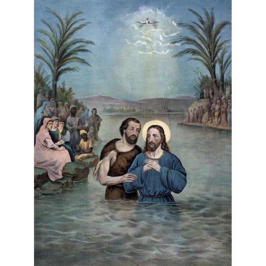 The Baptism of Christ Black Modern Wood Framed Art Print with Double Matting by Currier and Ives