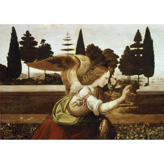 Annunciation - Detail Black Modern Wood Framed Art Print with Double Matting by Da Vinci, Leonardo