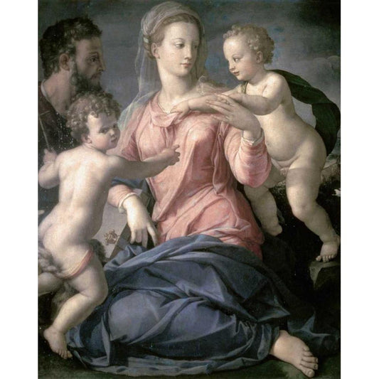 Holy Family Black Modern Wood Framed Art Print with Double Matting by Bronzino, Agnolo