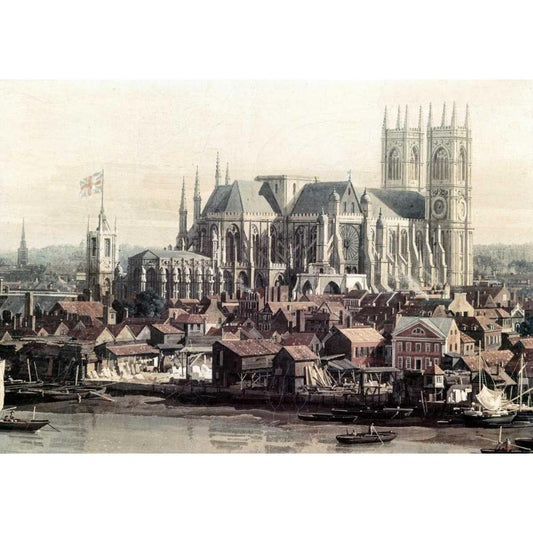 View of London With The Thames - Detail Black Modern Wood Framed Art Print with Double Matting by Canaletto