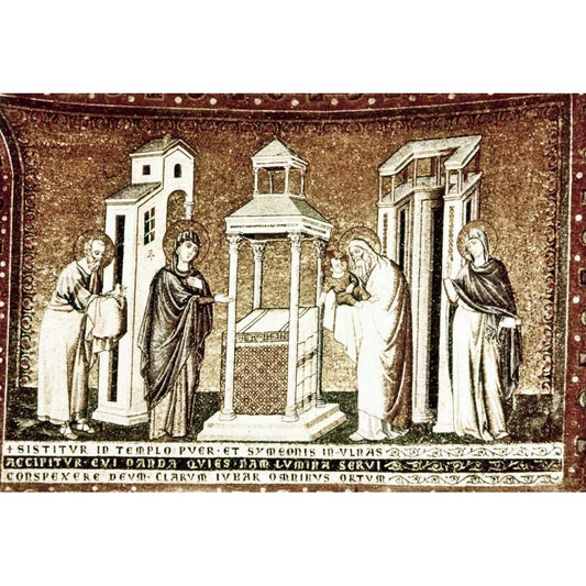 Presentation In The Temple Black Modern Wood Framed Art Print with Double Matting by Cavallini, Pietro