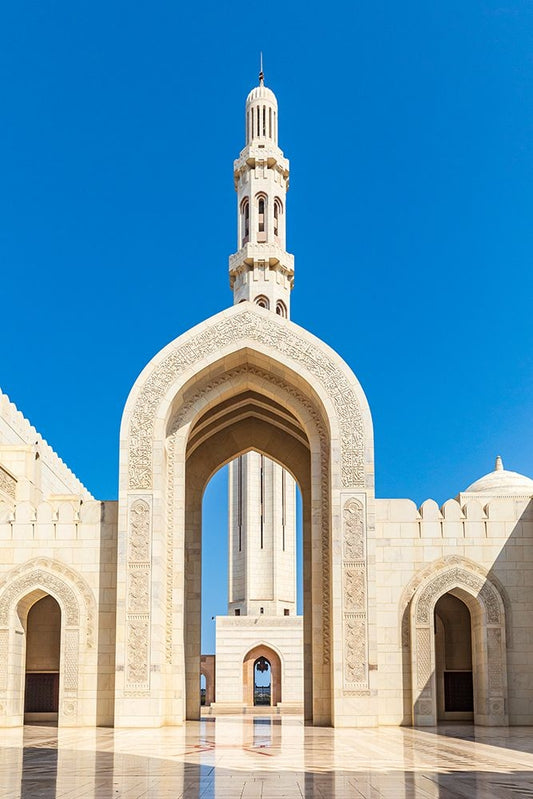 Middle East-Arabian Peninsula-Oman-Muscat-Entrance to the Sultan Qaboos Grand Mosque in Muscat White Modern Wood Framed Art Print with Double Matting by Wilson, Emily M.
