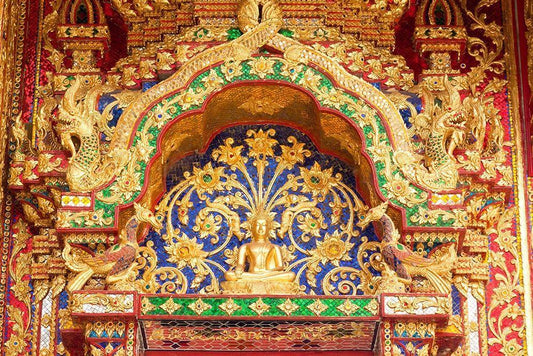 Thailand Temple detail White Modern Wood Framed Art Print with Double Matting by Haseltine, Tom