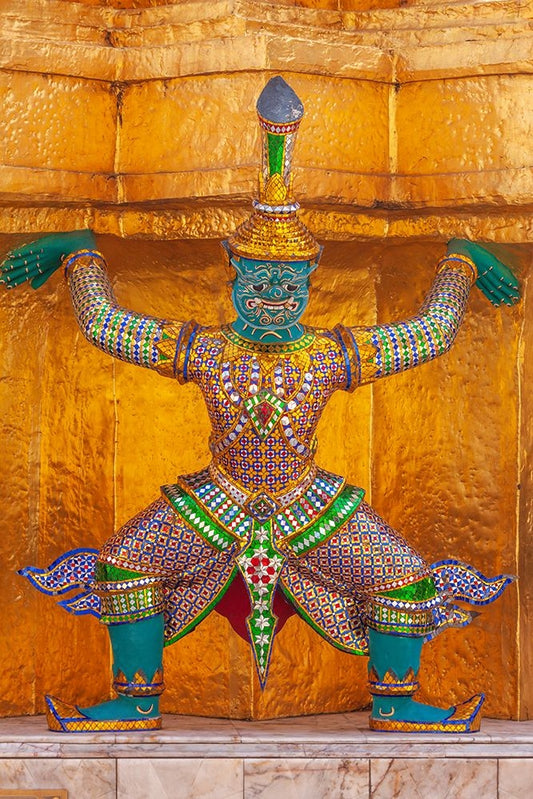 Thailand- Bangkok. Yaksha- demon depicted in the Ramayana- guarding Wat Phra Kaew White Modern Wood Framed Art Print with Double Matting by Haseltine, Tom