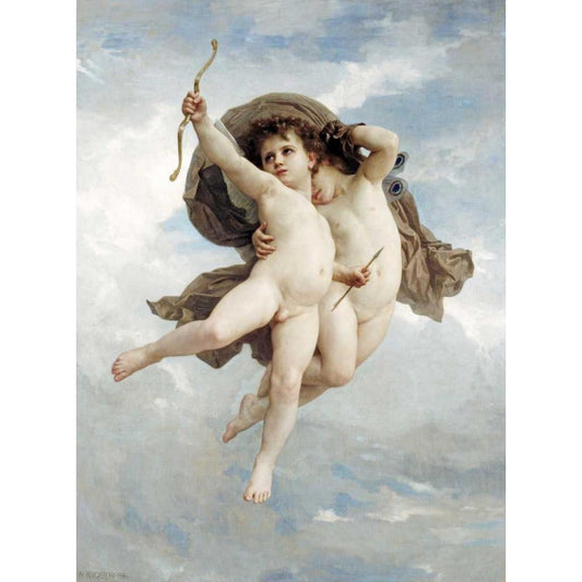 LAmour Vainqueur Black Modern Wood Framed Art Print with Double Matting by Bouguereau, William-Adolphe