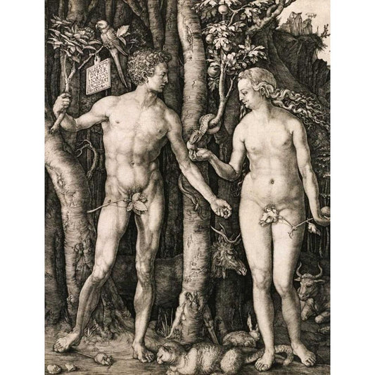 Adam and Eve Black Modern Wood Framed Art Print with Double Matting by Durer, Albrecht