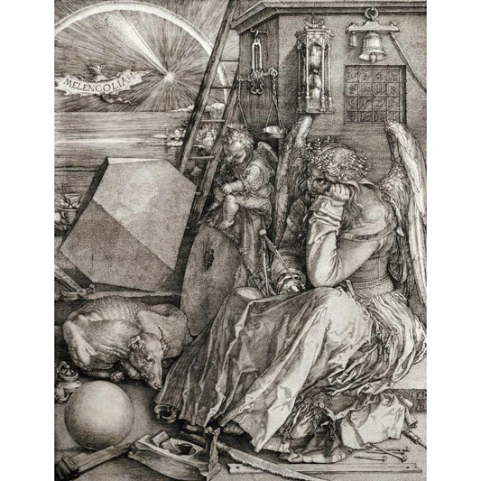 Melancholia Black Modern Wood Framed Art Print with Double Matting by Durer, Albrecht