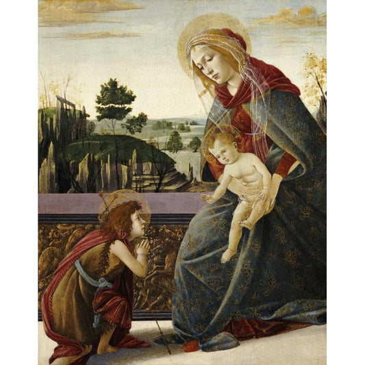 The Madonna and Child With The Young Saint John The Baptist Black Modern Wood Framed Art Print with Double Matting by Botticelli, Sandro