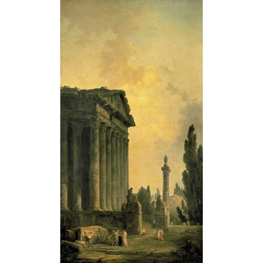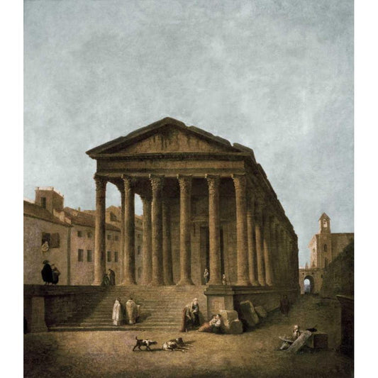 Temple of Augustus in Nimes, 1783 Black Modern Wood Framed Art Print with Double Matting by Robert, Hubert