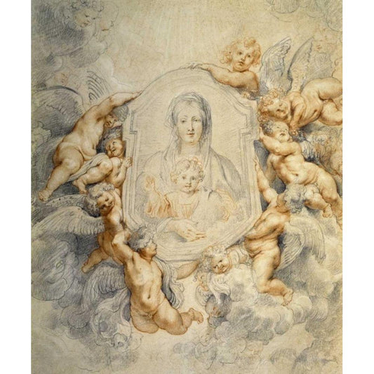 Image of the Virgin Portrayed with Angels Black Modern Wood Framed Art Print with Double Matting by Rubens, Peter Paul