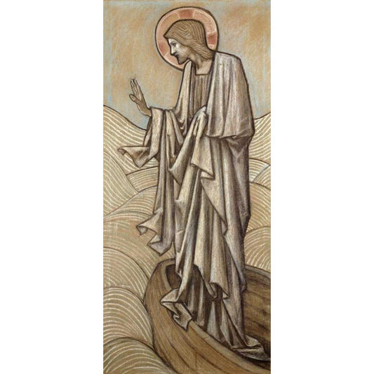 Christ Stilling The Waves Black Modern Wood Framed Art Print with Double Matting by Burne-Jones, Sir Edward