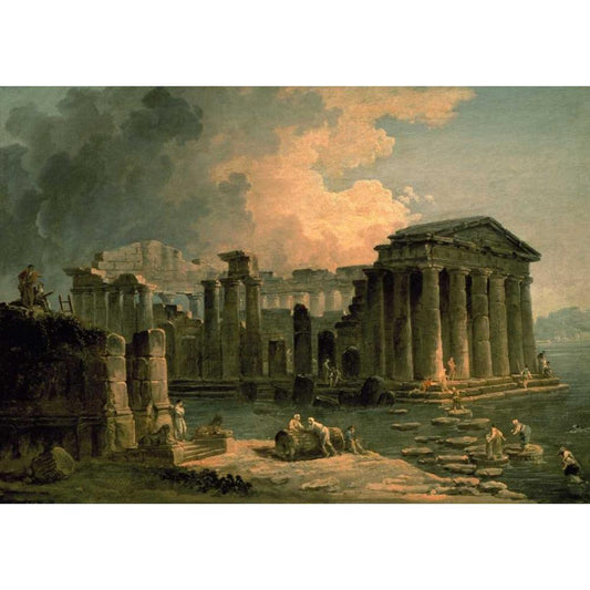 Ruins of a Doric Temple Black Modern Wood Framed Art Print with Double Matting by Robert, Hubert