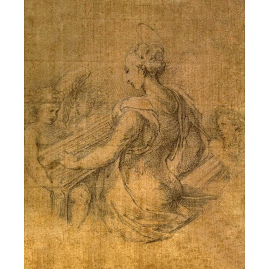 Lady with Angels Black Modern Wood Framed Art Print with Double Matting by Parmigianino
