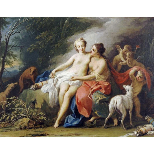 Diana Breaking Cupids Bow Black Modern Wood Framed Art Print with Double Matting by Batoni, Pompeo Girolamo