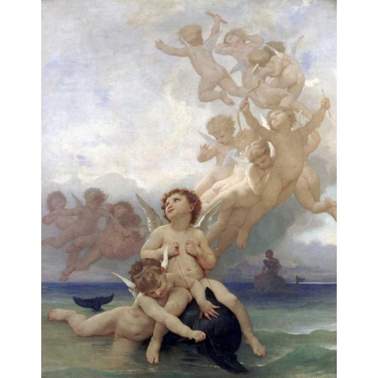 The Birth of Venus Black Modern Wood Framed Art Print with Double Matting by Bouguereau, William-Adolphe