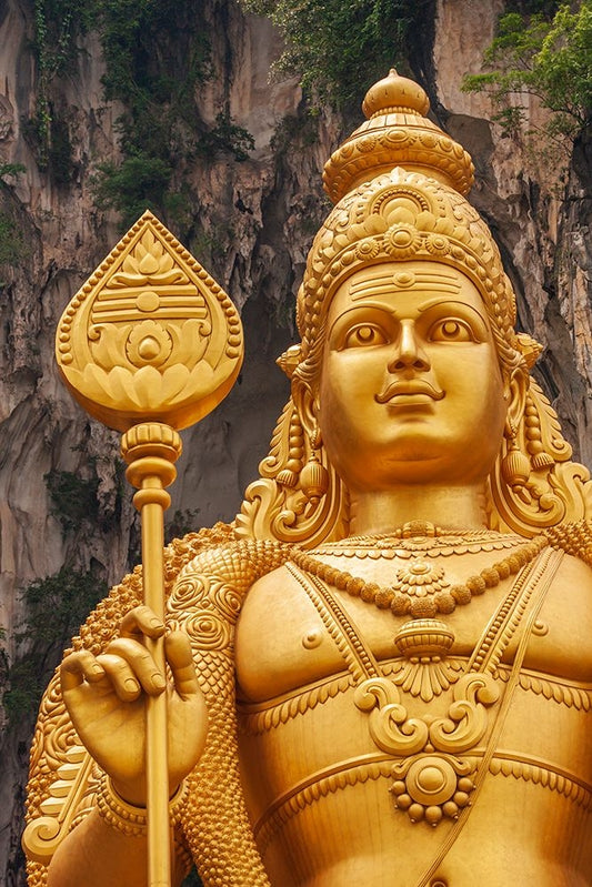 Kuala Lumpur- West Malaysia. Batu caves. The worlds tallest statue of Murugan- a Hindu deity White Modern Wood Framed Art Print with Double Matting by Haseltine, Tom
