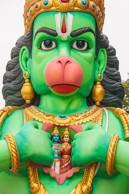 Kuala Lumpur- West Malaysia. Batu caves. Statue of the god Hanuman. White Modern Wood Framed Art Print with Double Matting by Haseltine, Tom