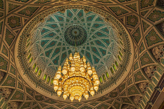 Middle East-Arabian Peninsula-Oman-Muscat-Chandelier-Sultan Qaboos Grand Mosque in Muscat White Modern Wood Framed Art Print with Double Matting by Wilson, Emily M.