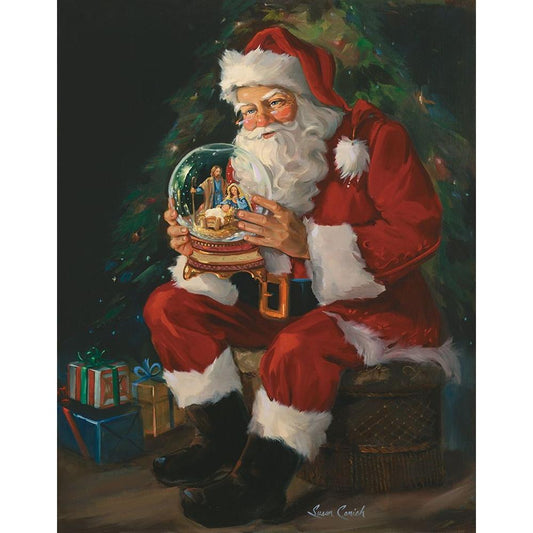 Santa Snowglobe Black Modern Wood Framed Art Print with Double Matting by Comish, Susan