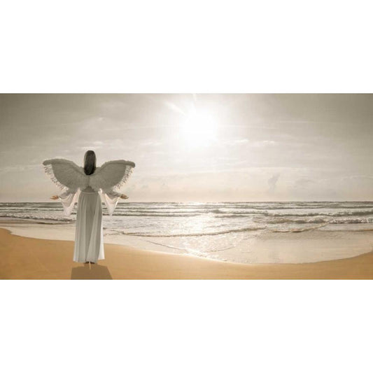 Angel on the beach at sunset Black Modern Wood Framed Art Print with Double Matting by Frank, Assaf