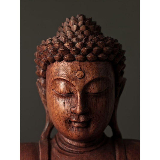 Buddha sculpture face Black Modern Wood Framed Art Print with Double Matting by Frank, Assaf