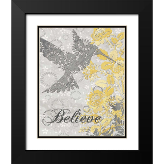 BELIEVE BIRD Black Modern Wood Framed Art Print with Double Matting by Ballantyne, Piper