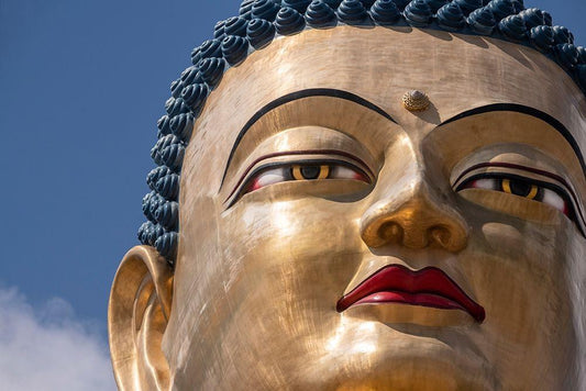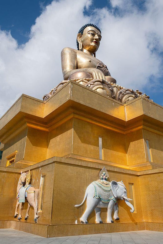 Bhutan-Thimphu Kuensel Phodrang-aka Buddha Point-Golden Bodhisattva statue White Modern Wood Framed Art Print with Double Matting by Hopkins, Cindy Miller