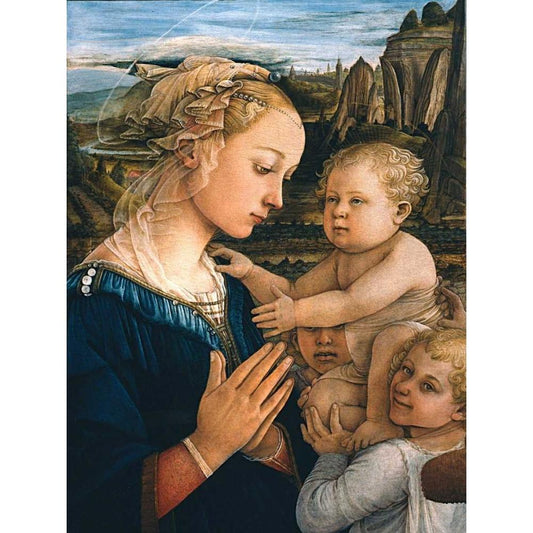 Madonna col Bambino e angeli (detail) Black Modern Wood Framed Art Print with Double Matting by Lippi, Filippo