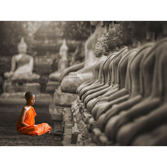 Young Buddhist Monk praying, Thailand (BW) Black Modern Wood Framed Art Print with Double Matting by Pangea Images
