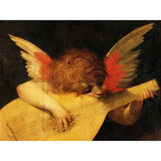 Angelo musicante (detail) Black Modern Wood Framed Art Print with Double Matting by Rosso Fiorentino