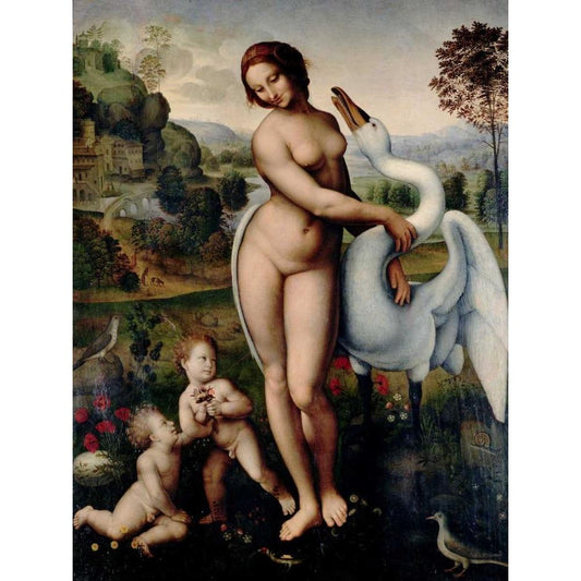 Leda and the Swan Black Modern Wood Framed Art Print with Double Matting by After Leonardo Da Vinci