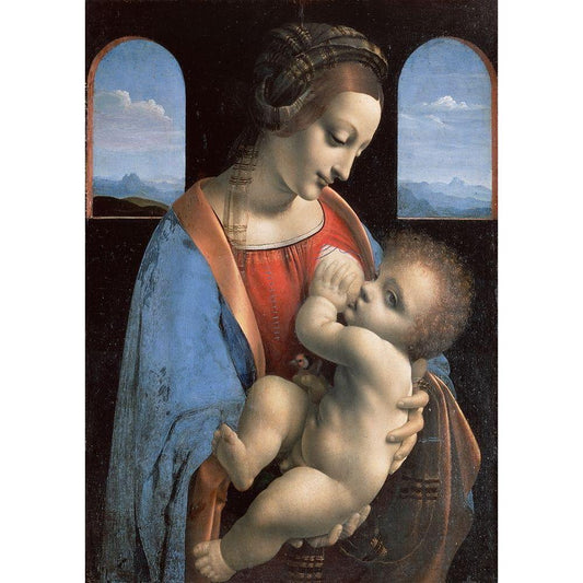 Madonna and Child (Madonna Litta) Black Modern Wood Framed Art Print with Double Matting by Leonardo, da Vinci