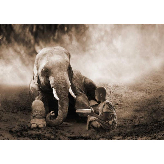 Young Buddhist Monk praying, Thailand (sepia) Black Modern Wood Framed Art Print with Double Matting by Pangea Images