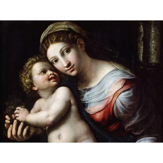 Madonna e Bambino (detail) Black Modern Wood Framed Art Print with Double Matting by Giulio Romano