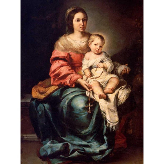 Madonna del Rosario Black Modern Wood Framed Art Print with Double Matting by Murillo, Bartolome Esteban