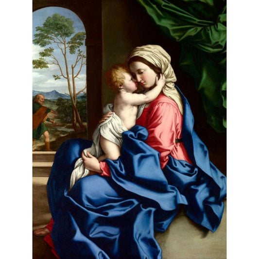 The Virgin and Child embracing Black Modern Wood Framed Art Print with Double Matting by Sassoferrato
