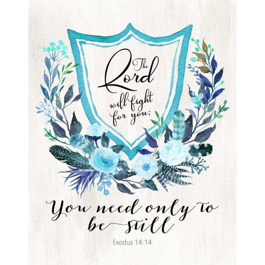 Exodus 14:14 - Blue Black Modern Wood Framed Art Print with Double Matting by Moss, Tara