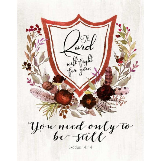 Exodus 14:14 - Burnt Orange Black Modern Wood Framed Art Print with Double Matting by Moss, Tara