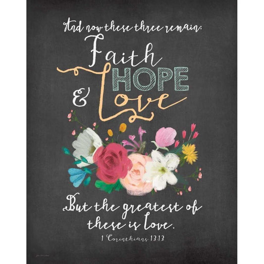 Faith, Hope and Love Black Modern Wood Framed Art Print with Double Matting by Moulton, Jo