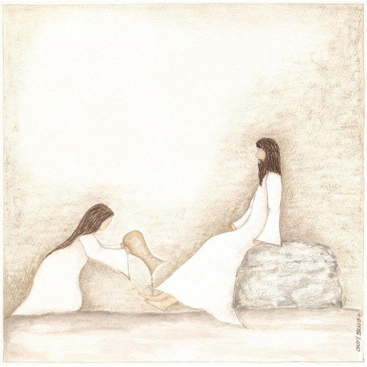 Woman Anoints Jesus with Perfume Black Modern Wood Framed Art Print with Double Matting by Shamp, Cindy