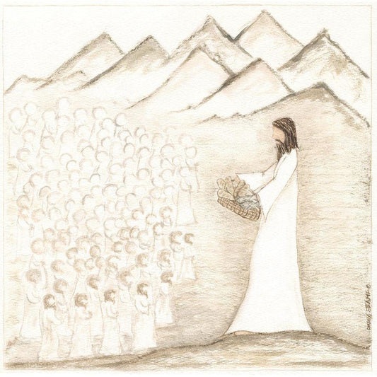 Jesus Feeds Five Thousand Black Modern Wood Framed Art Print with Double Matting by Shamp, Cindy