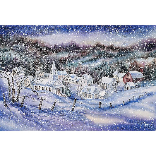 Winter Village Black Modern Wood Framed Art Print with Double Matting by McKenna, Kathleen Parr