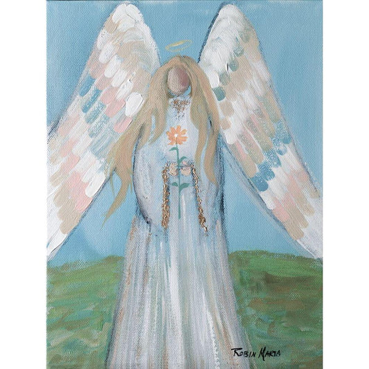 Angel in Spring Black Modern Wood Framed Art Print with Double Matting by Maria, Robin