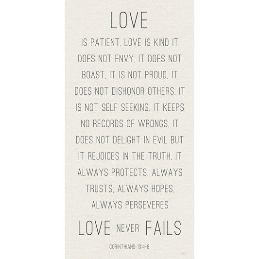 Love Never Fails Black Modern Wood Framed Art Print with Double Matting by Carpentieri, Natalie