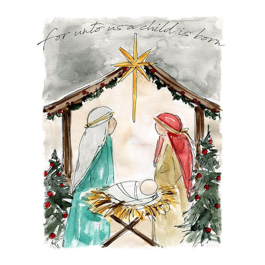 Unto Us a Child is Born Black Modern Wood Framed Art Print with Double Matting by Robinson, Carol