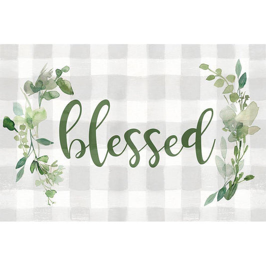 Blessed Checked Greenery Black Modern Wood Framed Art Print with Double Matting by Robinson, Carol